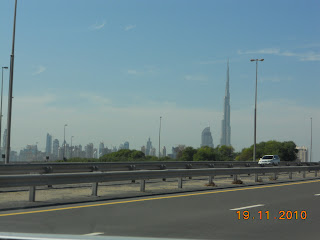 We had so much fun on the desert safari, but the name is a little misleading. It wasn't really a safari and we only rode the camel for one minute, but after that I realized, it would have been way too painful to ride it longer than that. The first pictures are our entry into Dubai to meet our ride. The tallest building in the world (now) is in the background. We met our ride at IKEA and he took us to the meeting point. We got in a big SUV with roll bars in the ceiling, which should have been my first clue to what was about to come. I had other clues because on the way to the meeting site we saw four wheelers and off roaders driving around the dunes. Anyway, what came next was like being trapped on a roller coaster. Straight up, sideways, down, slinging right and left, nearly tipping over, and claw prints on the seat and on Tandy who was riding beside me. It was a nightmare, but at least the wheels were on the ground......some of the time. All I could think was....I want to get out, I want to get out.
